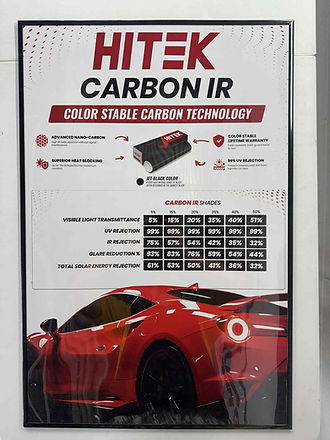 Carbon window film is an upgrade from traditional dyed and metalized window film, which originated in 1966. Carbon tint consists of a carbon nano-particle infused film layer, which is then bonded to an adhesive backing. Carbon window film has a number of benefits over traditional dyed and metalized window film. It has an increased ability to block out infrared rays, reducing heat and glare. It is able to do this without the signal interference sometimes associated with metalized film. Additionally, carbon window film is durable, scratch resistant, and top lines will last the life of the car.